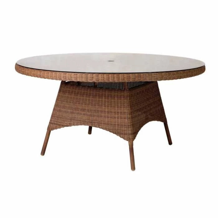 - San Marino 150cm round wicker garden table with glass