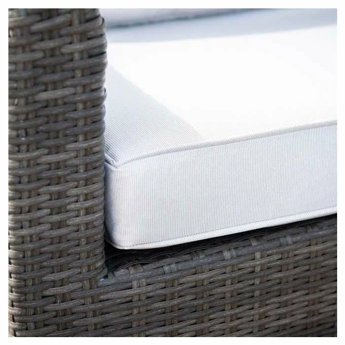 Designed for modern outdoor living, this versatile set has deep high-backed seating lined with thick foam-filled cushions for unrivalled comfort. The two footstools can be used as seating when you have more guests or stored under the coffee table when not in use.