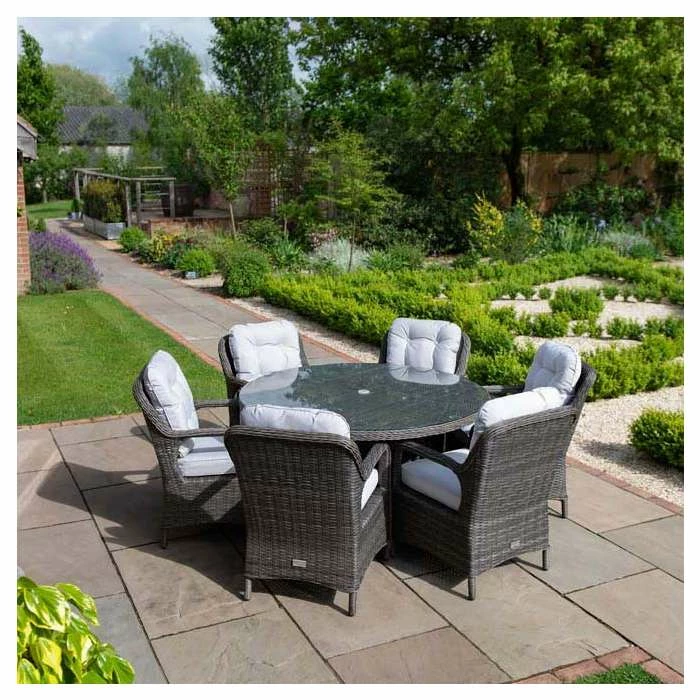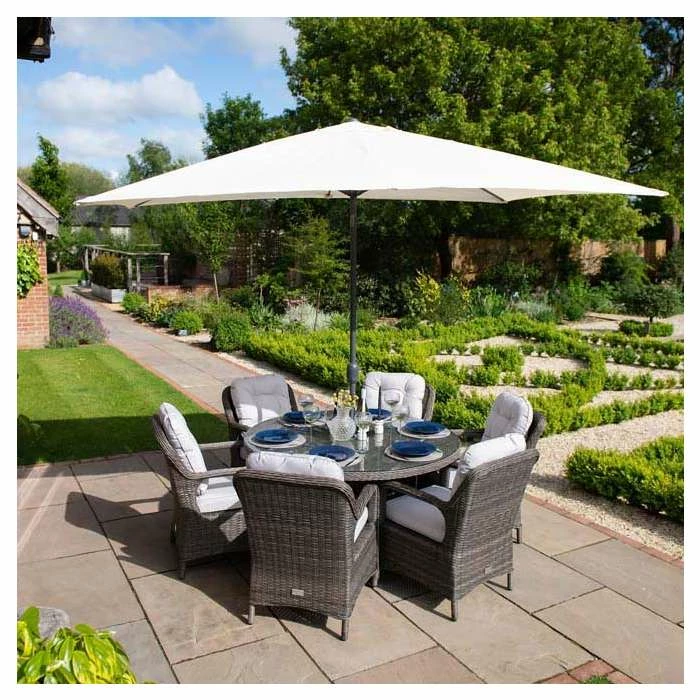 Classic Rattan 6 Seater Circular Garden Dining Set with Parasol in Stone by Primrose Living