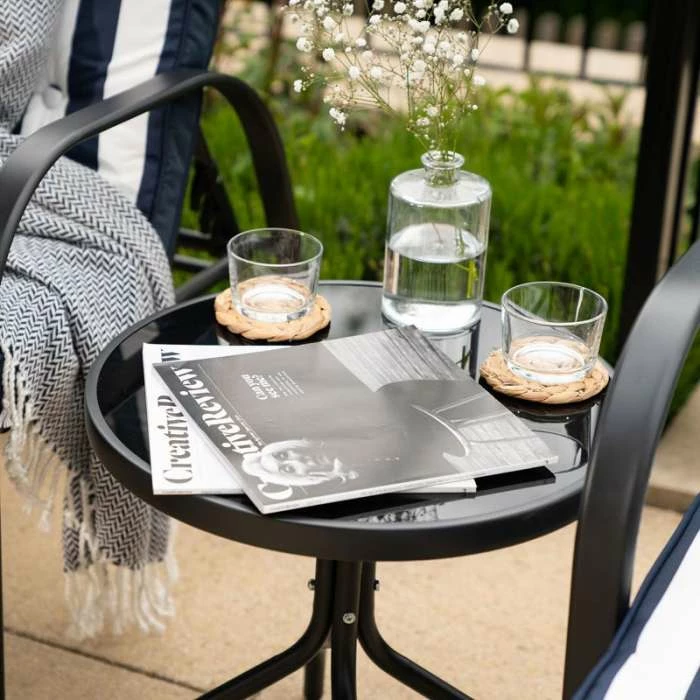 - Complementary black table and chair frames