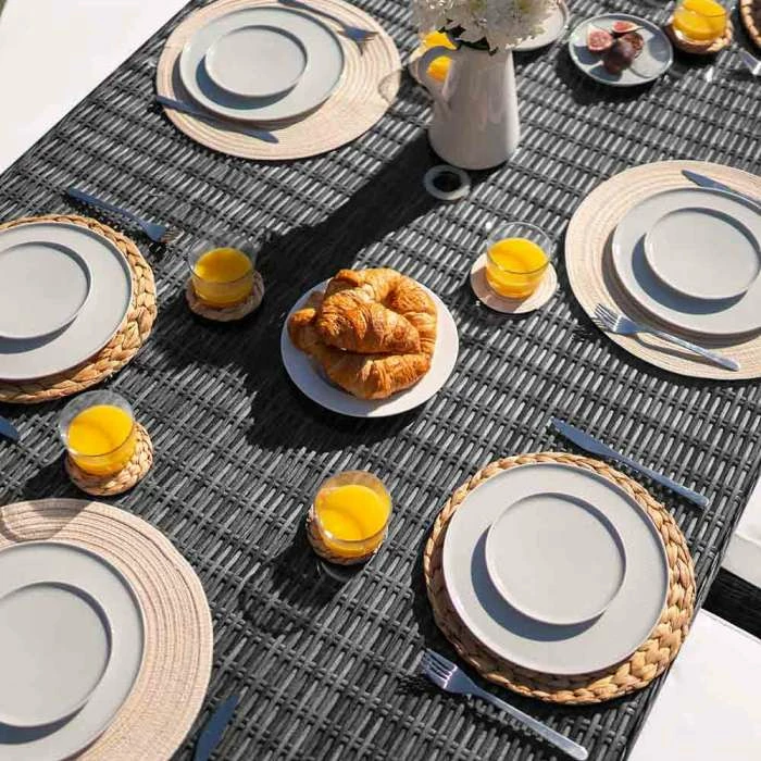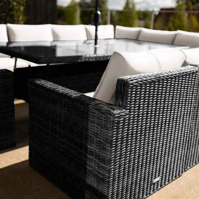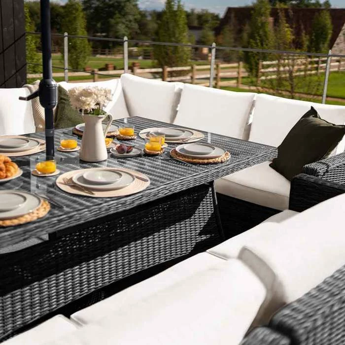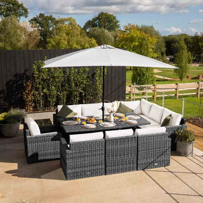 ‘Iris’ Luxury Rattan 10 Seater Garden Sofa Set with Rectangular Table in Stone by Primrose Living