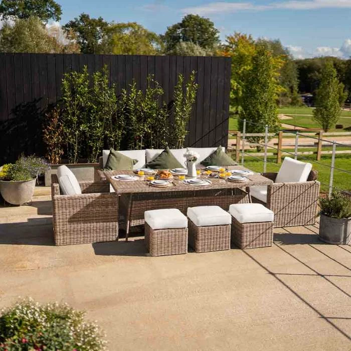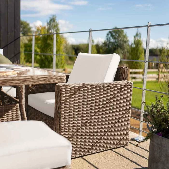 ‘Iris’ Luxury Rattan 8 Seater Garden Sofa Set with Rectangular Table and Parasol by Primrose Living