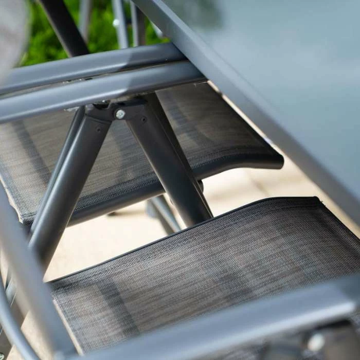 This brilliant six seater garden dining set is perfect for enjoying a big family lunch in the sunshine. With a fantastic high quality parasol that comes with its own crank you can enjoy spending time in your garden without having to worry about the harsh heat. The adjustable chairs are made with durable SuperPolyTex fabric which is not only extremely comfortable but also easy to clean. The powder coated steel frame has excellent resistance to adverse weather conditions and is also easy to put together.