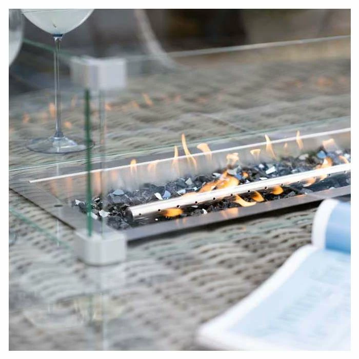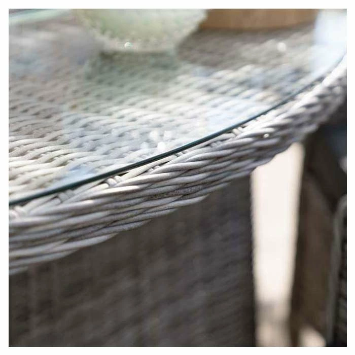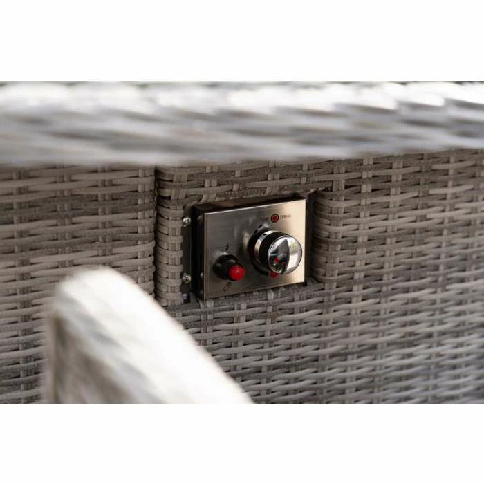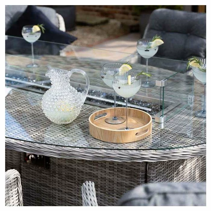 Luxury Rattan 6 Seater Oval Fire Pit Garden Dining Set in Pebble by Primrose Living