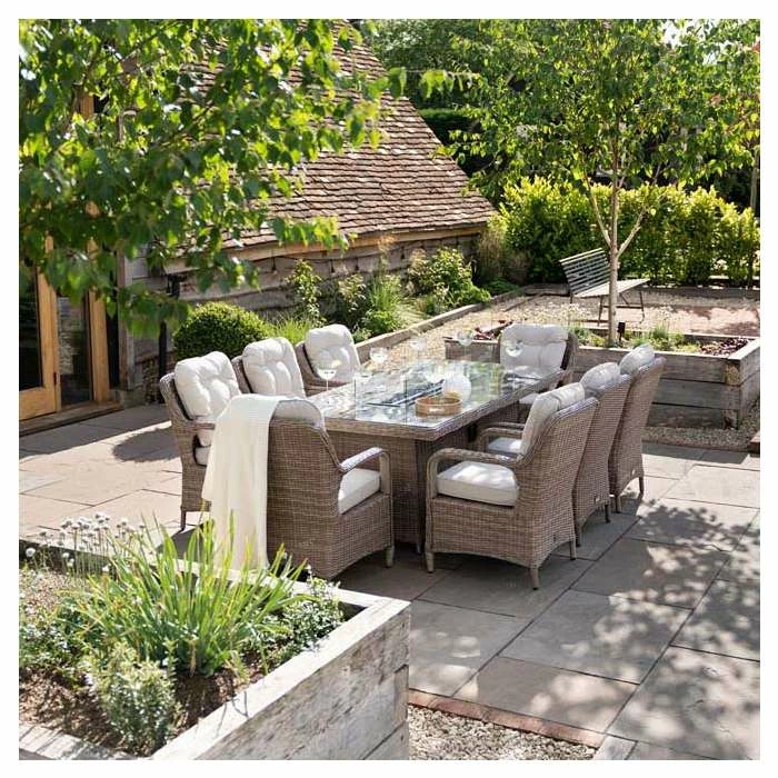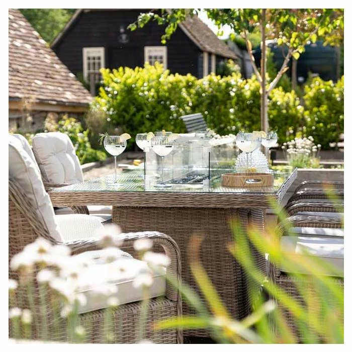 Luxury Rattan 8 Seater Rectangular Fire Pit Garden Dining Set by Primrose Living
