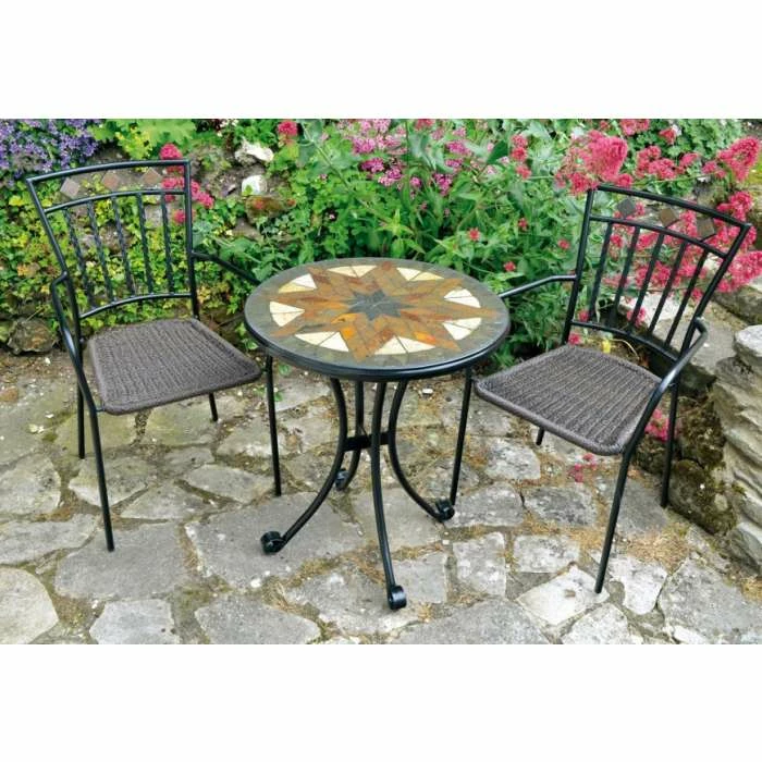 The warm earthy colours of the Montilla table make it ideal for the garden or the patio, made from riven stone hand laid this table is matched with the Malaga chairs which stack, are made of tubular steel and share a stone colour in the back rest that matches the table top.