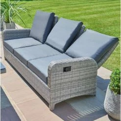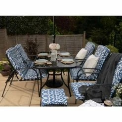 The Wroxham 6 seater dining set has been developed with both comfort and style foremost. The large chairs have the perfect recline with deep seating and soft supporting back cushions. This range isfurther enhanced by the showerproof cushions, a durable mix of acrylic and polyester with a showerproof coated inner. This range also comes with an extended 5 year warranty. The luxury weave is a beautiful blend of colours in a wide weave, which gives a superior finish to the collection.