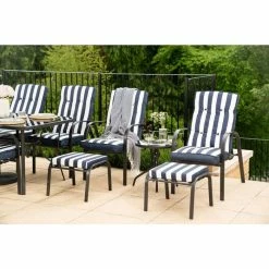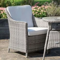 The Hawaii sofa and chairs can be infinitely adjusted to any desired position by means of a gas spring. The set has an aluminium frame which is interlaced with Yacht Grey weave. The table comes with a spraystone glass top.