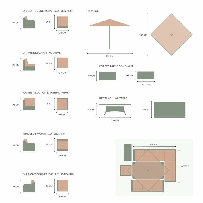 Built to last using a premium double-woven half weave rattan (a rare find) around a powder-coated aluminium frame, this is a set you’ll enjoy for years to come. Using the modular set pieces, you can style your furniture your way whatever the occasion.