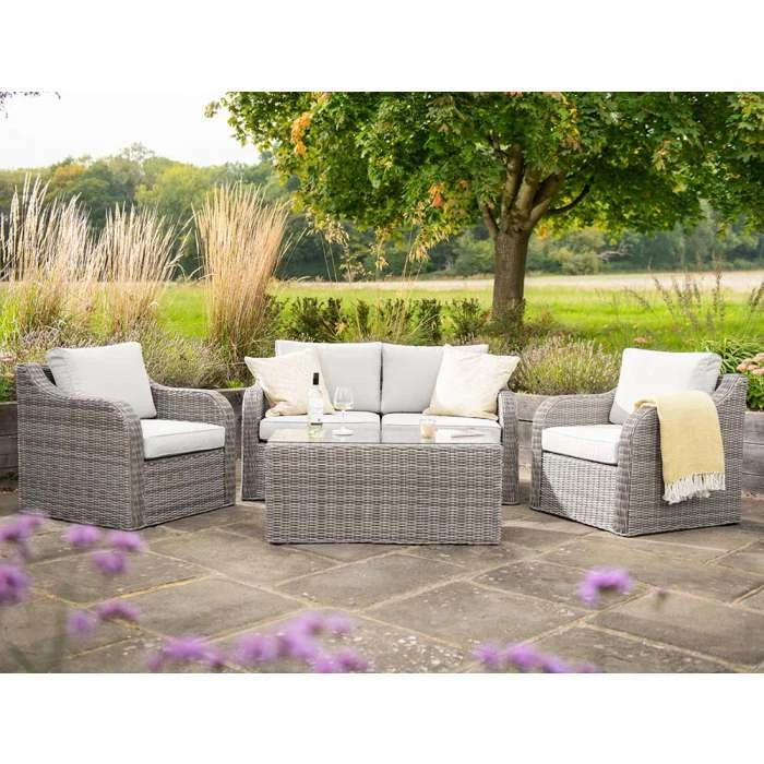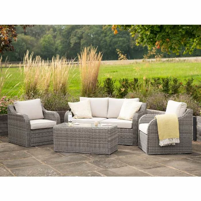 Dine, relax and entertain in style. Designed for modern outdoor living, this versatile set has deep, high-backed seating lined with thick, foam-filled cushions for unrivalled comfort and support.