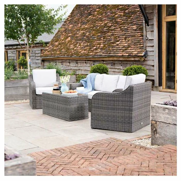 Dine, relax and entertain in style. Designed for modern outdoor living, this versatile set has deep, high-backed seating lined with thick, foam-filled cushions for unrivalled comfort and support.
