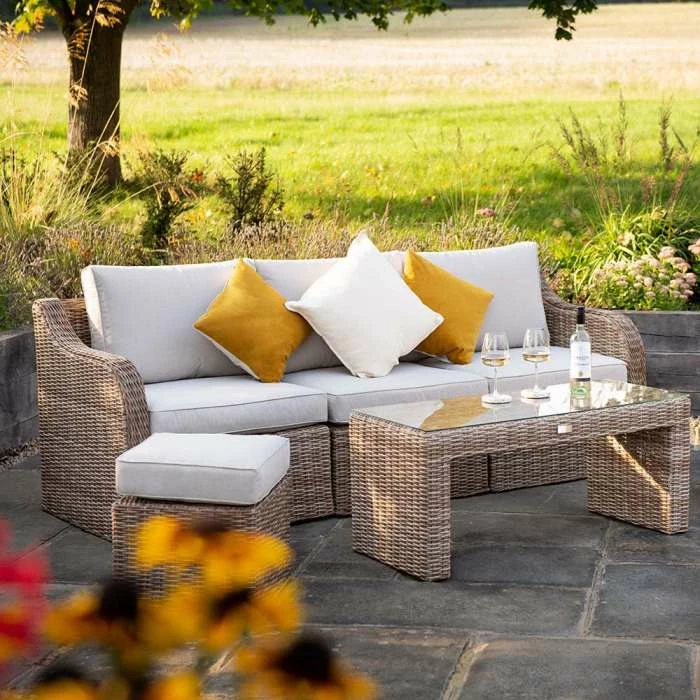 Built to last using a premium double-woven half weave rattan (a rare find) around a powder-coated aluminium frame, this is a set you’ll enjoy for years to come. Using the modular set pieces, you can style your furniture your way, whatever the occasion.
