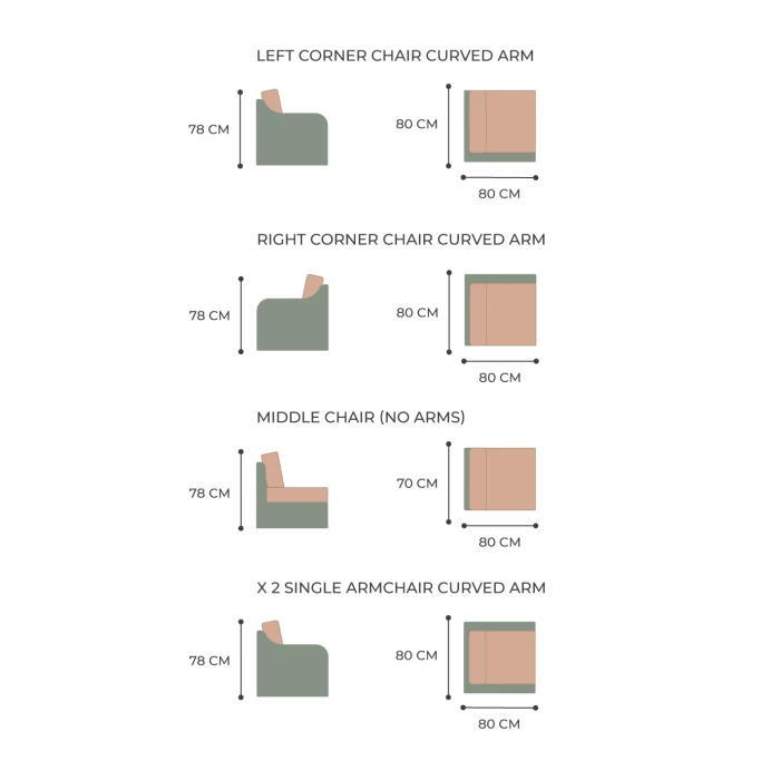 - 1 x Right Corner Chair