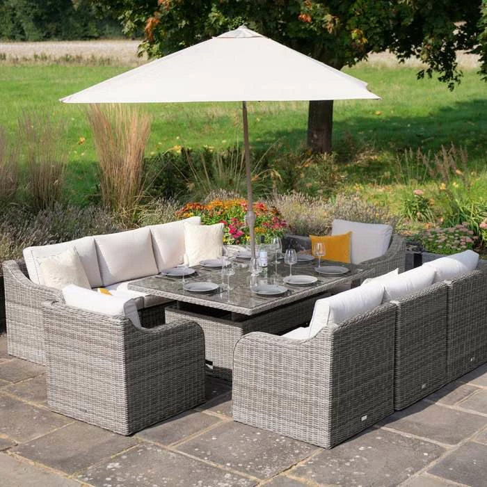 Dine and entertain in comfort and style with Primrose Living. Designed with modern outdoor living in mind, this modular set can be arranged any way you want and comes with a lot of versatile extras. The deep seated, high-backed seating is lined with thick, foam-filled cushions for unparalleled comfort and support.