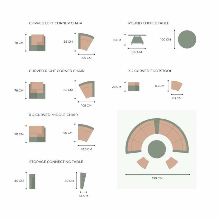 - 1 x Curved Left Corner Chair