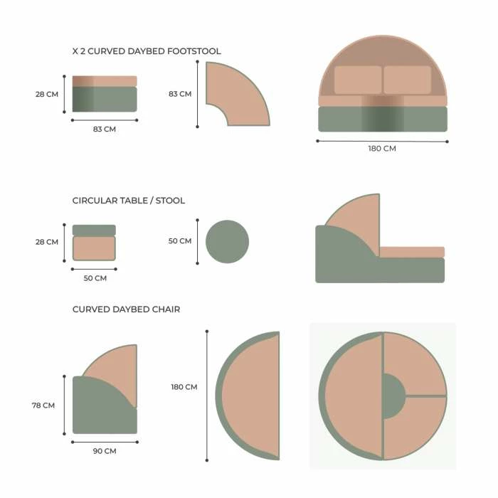 Blend style and design with a unique set that is made for modern living. This versatile set can be arranged into a relaxing daybed or spaced out to create an intimate social setup.