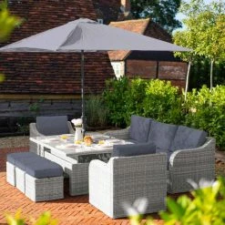 ‘Peony’ Luxury Rattan 7 Seater Modular Garden Sofa Set with Square Rising Table by Primrose Living