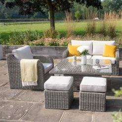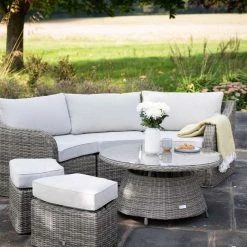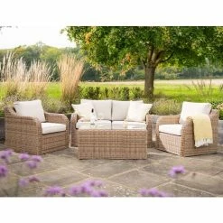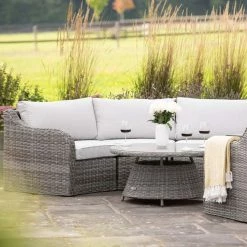 ‘Peony’ Luxury Rattan 4 Seater Modular Garden Sofa Set with Coffee Table in Stone by Primrose Living