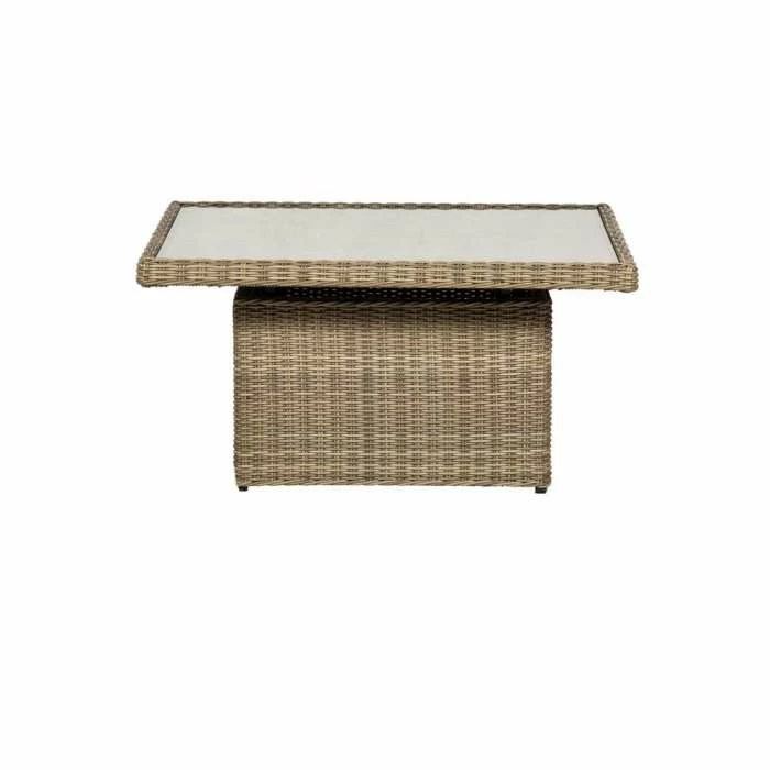 Relax in this stylish Wentworth Corner Lounging Set, retaining classic style with its aluminium framework construction and hand woven synthetic half round weave rattan it offers style, comfort, strength and durability. Consisting of 100 x 100cm square adjustable table, 2 sofas and corner seat all with cushions, the table can be adjusted to suit your needs as coffee or dining table. This set is perfect for indoors and out and will provide years of enjoyment.